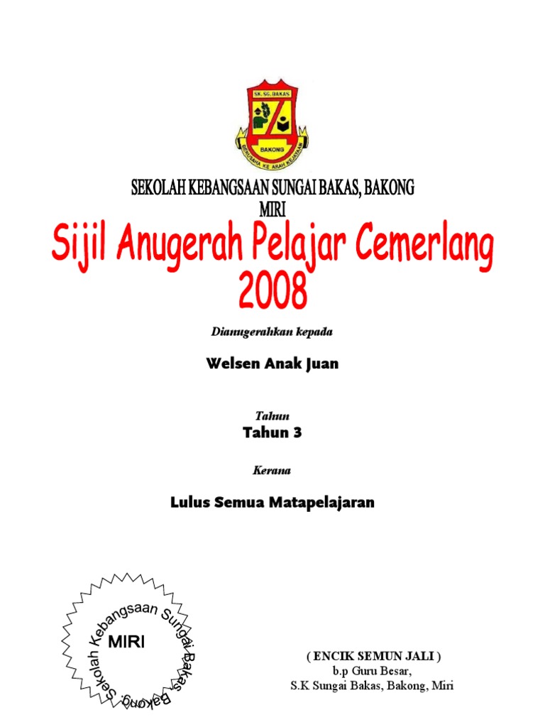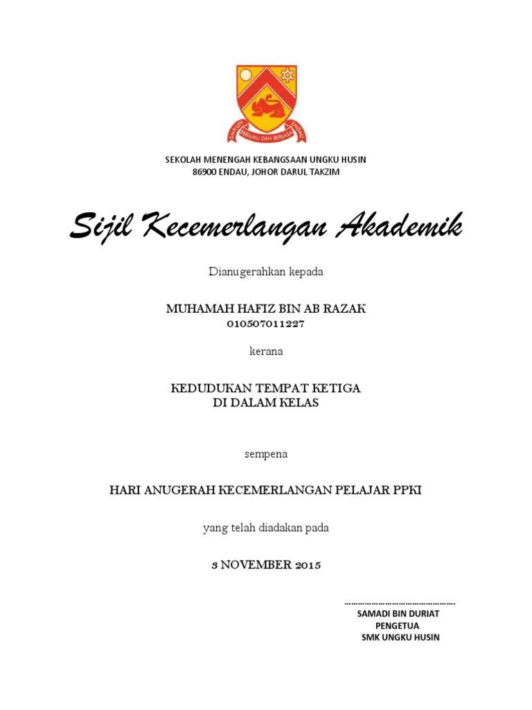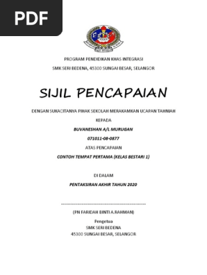 Contoh Sijil Pencapaian Kedudukan Pdf
