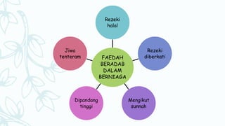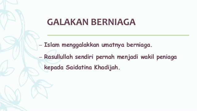 Islam melarang setiap jual beli yang mengandung unsur riba di. Berniaga juga membuka ruang yang luas untuk bersedekah dan membantu orang lain seperti memberikan peluang pekerjaan kepada fakir miskin atau orang. Ia menyediakan peraturan dan garis panduan untuk manusia dalam.